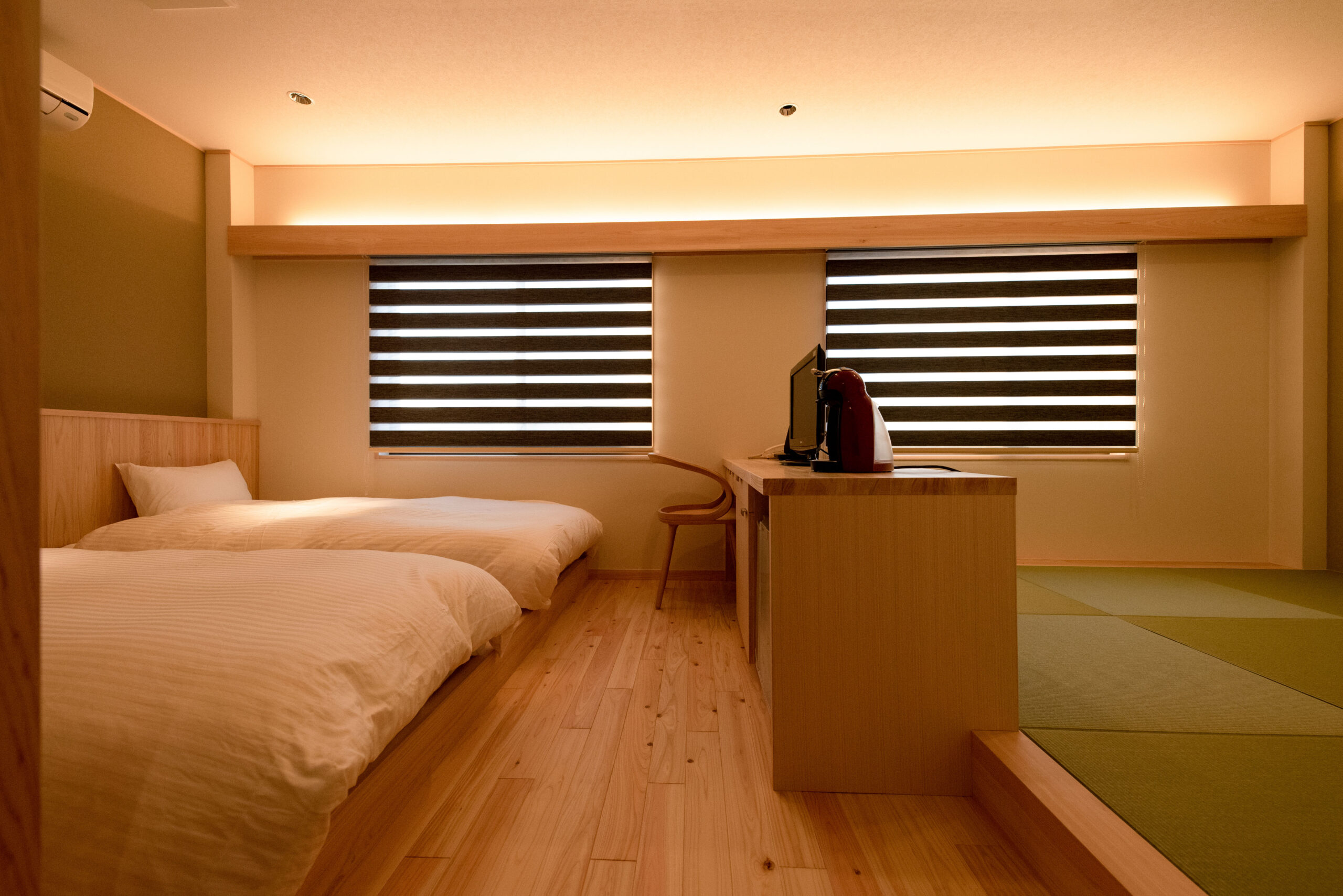 こちらのお部屋 モダンなデザインの檜のお部屋